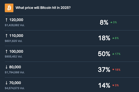 Dieser Ausblick wird hinfällig, wenn BTC den 20-Tage-EMA klar überwindet. Eine solche Bewegung würde auf eine zunehmende bullische Dynamik hindeuten und den Weg für eine Rückkehr zum psychologisch wichtigen Niveau von 100.000 US-Dollar ebnen – jenem Preis, dem Polymarket-Händler derzeit eine 50 %ige Wahrscheinlichkeit beimessen.